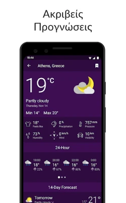 Βυθιστείτε στις λεπτομέρειες με το Clime, όπου η πληροφορία ζωντανεύει. Δείτε την πρόγνωση βροχόπτωσης για τις επόμενες 24 ώρες, παρακολουθήστε τη νέφωση από δορυφορική οπτική και εξερευνήστε τον Παγκόσμιο Χάρτη Καιρού με τις τρέχουσες συνθήκες σε πολλές αποθηκευμένες τοποθεσίες. Ανακαλύψτε την τρέχουσα θερμοκρασία, τις ελάχιστες-μέγιστες τιμές της ημέρας, την ατμοσφαιρική πίεση, την υγρασία, την ταχύτητα και την κατεύθυνση του ανέμου, την ορατότητα, το σημείο δρόσου, αλλά και την "αίσθηση" της θερμοκρασίας. Επιπλέον, το Clime σας ενημερώνει για την πιθανότητα και την ποσότητα βροχόπτωσης, καθώς και για τις ώρες ανατολής και δύσης του ηλίου, πλαισιώνοντας την εικόνα με ειδικές επισημάνσεις καιρού βάσει σοβαρότητας.