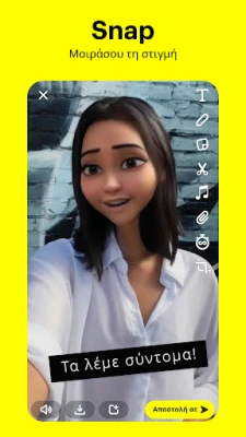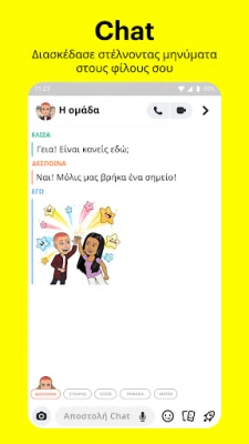 Εξερευνήστε το Snapchat, τον απόλυτο διασκεδαστικό και γρήγορο τρόπο να μοιράζεστε αυθόρμητα τις στιγμές σας. Συνδεθείτε με φίλους και οικογένεια, στείλτε snaps, chat και εκφραστείτε δημιουργικά με φίλτρα και φακούς. Ζήστε μοναδικές εμπειρίες.