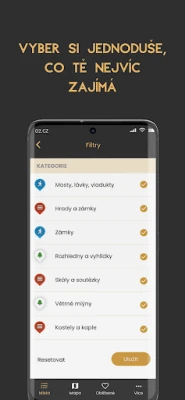 Η εφαρμογή μας μετατρέπει την εξερεύνηση σε παιχνίδι, προσφέροντας εύκολη αναζήτηση βάσει κατηγοριών όπως ιστορικά ερείπια, γραφικοί ανεμόμυλοι, εντυπωσιακά λατομεία και πανοραμικές θέες, ή ανά περιοχή. Περιηγηθείτε σε αυτά τα μέρη μέσα από τον διαδραστικό χάρτη του Mapy.cz ή χαθείτε στην ομορφιά τους μέσα από την πλούσια συλλογή φωτογραφιών επαγγελματιών Τσέχων φωτογράφων. Εξατομικεύστε την εμπειρία σας: αποθηκεύστε τα αγαπημένα σας σημεία για μελλοντικές εξορμήσεις και καταγράψτε όσα έχετε ήδη επισκεφθεί. Επιπλέον, θα βρείτε λεπτομερείς πληροφορίες για κάθε τοποθεσία, συμπεριλαμβανομένων πιθανών εισιτηρίων, καθώς και ειδικές προτάσεις για οικογένειες με παιδιά, επισκέπτες με αναπηρικό αμαξίδιο, ή για όσους ταξιδεύουν με τον τετράποδο φίλο τους.
